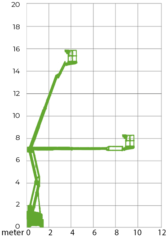 De 17 meter hybride kniktelescoophoogwerker is zelfrijdend met 4x4 aandrijving en is met de hybride aandrijving (accu of diesel) geschikt emissieloos werken op binnen- en buitenlocaties. Dankzij de knikarm kun je met deze hoogwerker flexibel werken over obstakels. Daarnaast heeft de kniktelescoophoogwerker een ruim zijdelings bereik.